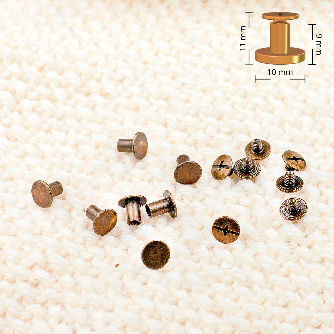 Lattapäinen ruuviniitti halkaisija 9-10mm. Valmistettu sinkki-seoksesta. Saatavilla neljässä värissä; kulta, hopea, musta/grafiitti ja pronssi. Mustaa/grafiitti ja pronssi saatavilla 5, 7 ja 9mm pituuksissa.